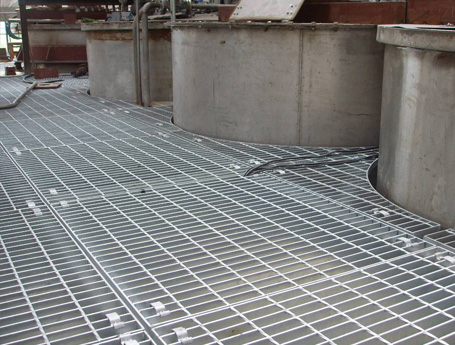 污水廠用鋼格板   污水處理廠用鋼格柵其特點為:   1、強度高:牢固的網格壓焊結構使其具有高承載;   2、結構輕:便于吊裝等特點;   3、外形美觀,經久耐用:熱浸鋅表面處理使其具有相當好的防腐能力,表面光澤美觀; ···